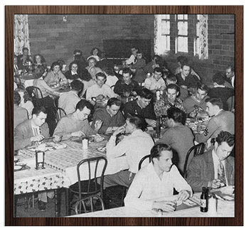 These photos of Miller in 1940 and present day show little change to the outside of the building. It still sports a shaggy, ivy covering although now there are comfy benches flanking the front along with freshened landscaping.